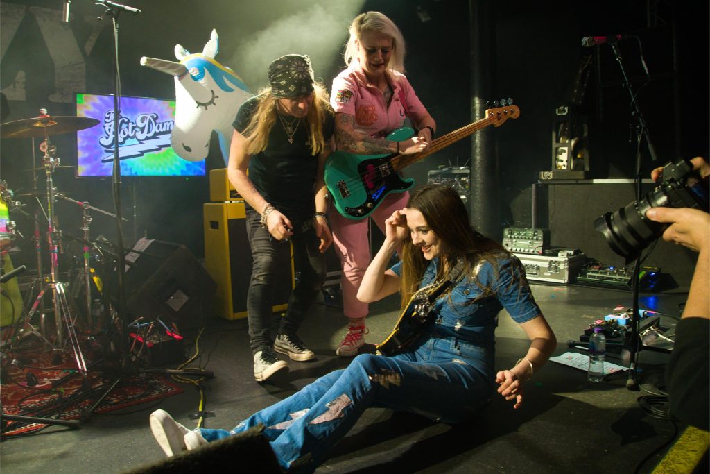 Next up it’s The Hot Damn: No strangers to the Rock City scene, this is a band we have been following and championing for many years now, ever since we first saw them at Underworld in Camden. The Hot Damn brought their trademark fun, complete with two full-sized unicorns. Laurie spun and grooved, Lzi laid down killer bass lines, and Josie, the smallest drummer in history, pounded the skins like a pro. Gill’s vocals were on point, especially during the famous Hot Damn twist on “(Oh Lord Won’t You Buy Me A) Mercedes Benz.”