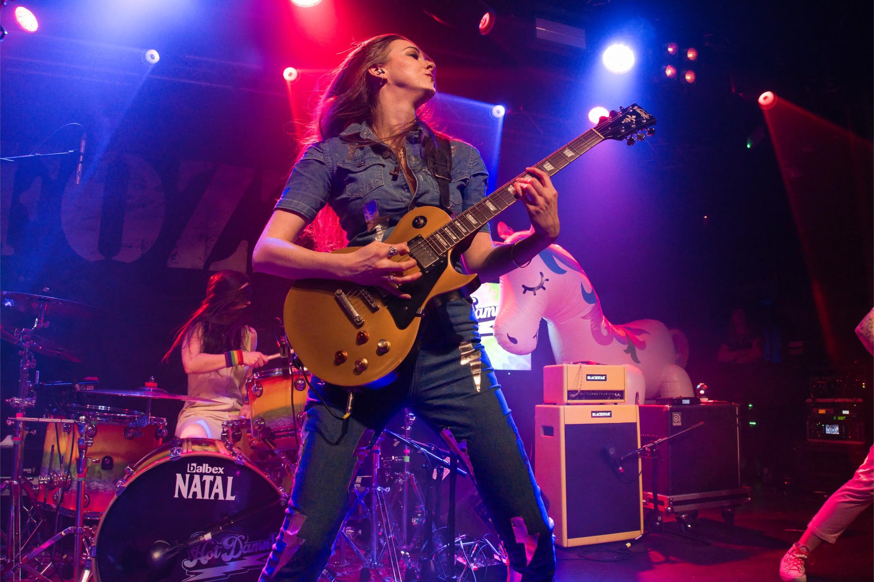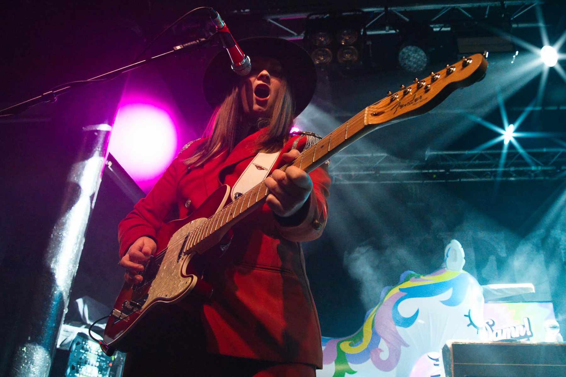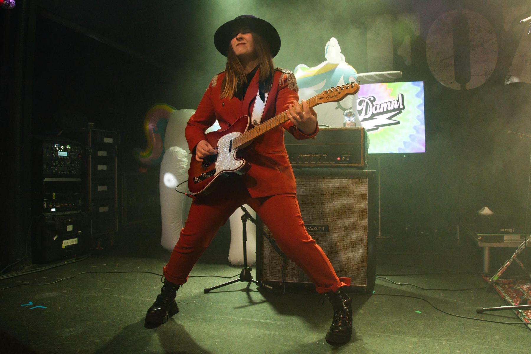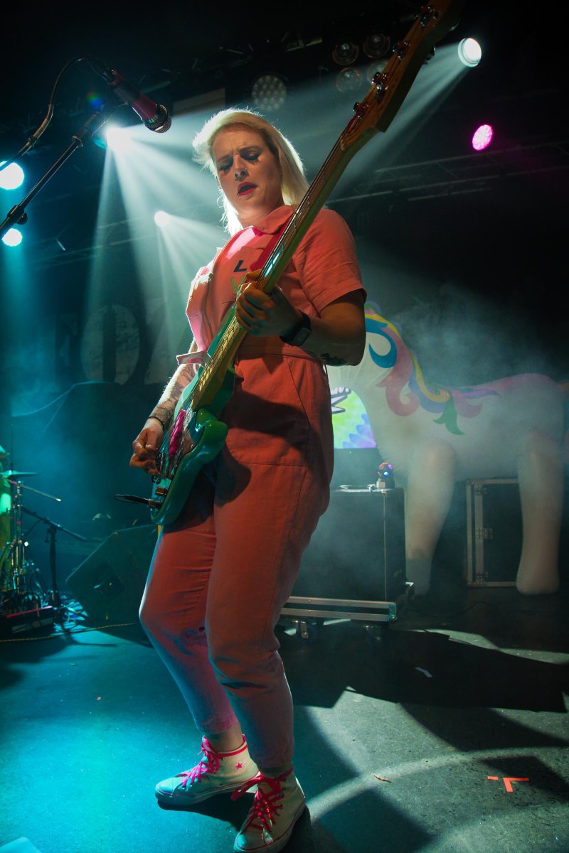Next up it’s The Hot Damn: No strangers to the Rock City scene, this is a band we have been following and championing for many years now, ever since we first saw them at Underworld in Camden. The Hot Damn brought their trademark fun, complete with two full-sized unicorns. Laurie spun and grooved, Lzi laid down killer bass lines, and Josie, the smallest drummer in history, pounded the skins like a pro. Gill’s vocals were on point, especially during the famous Hot Damn twist on “(Oh Lord Won’t You Buy Me A) Mercedes Benz.”