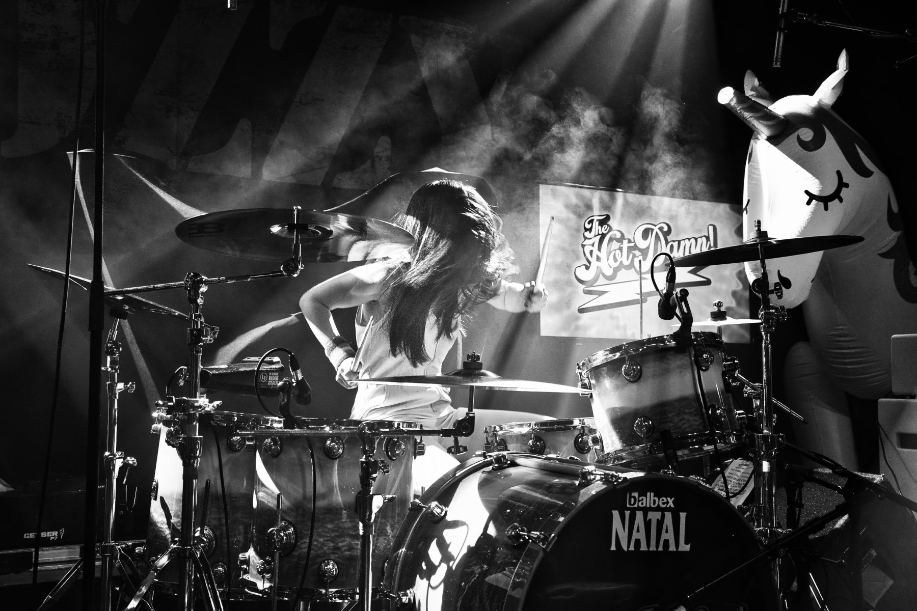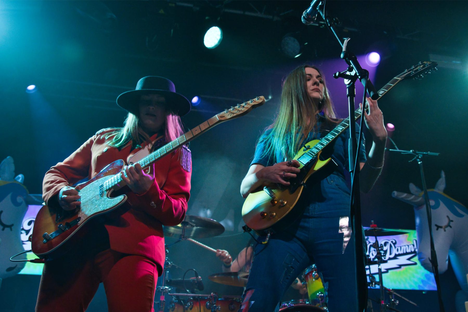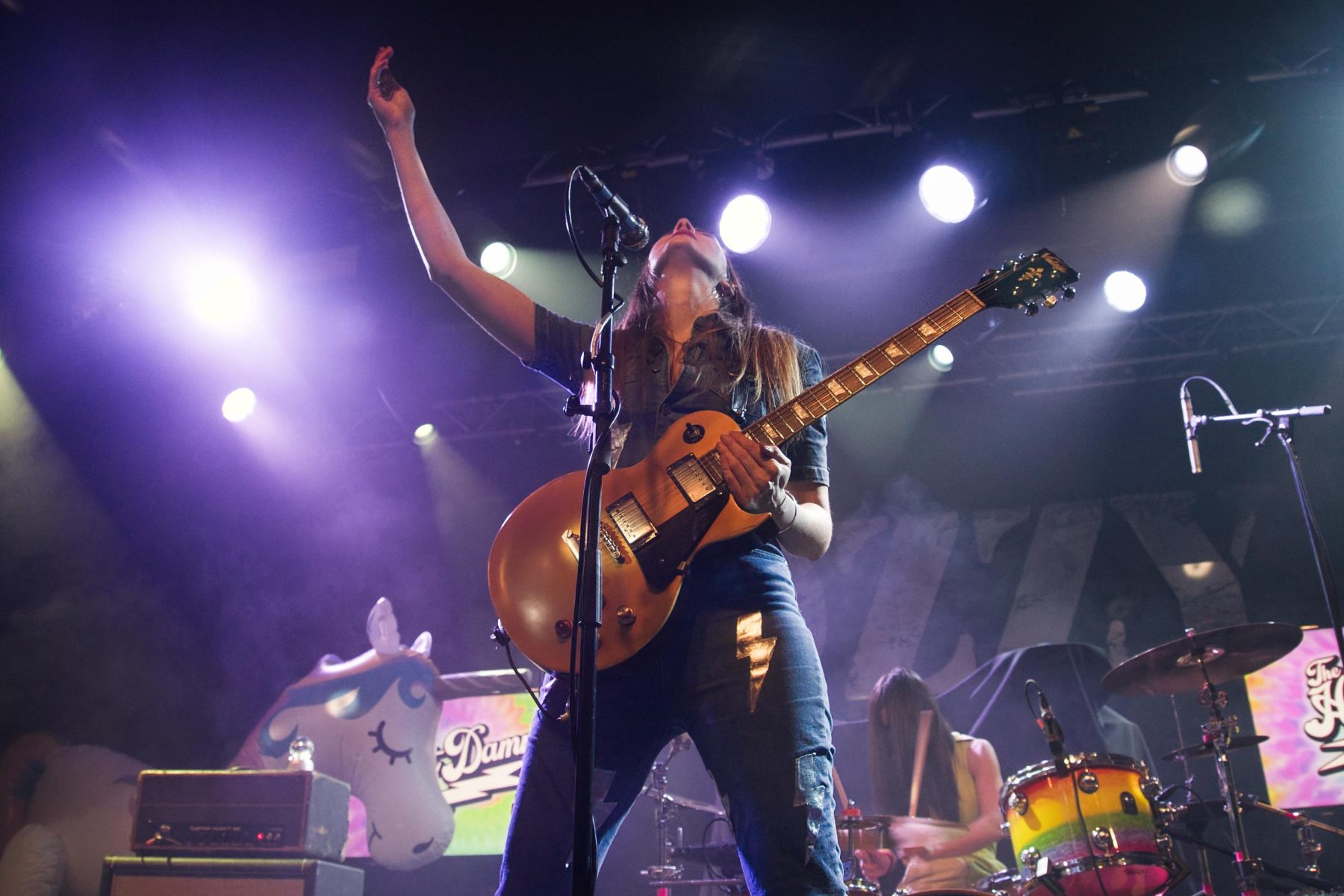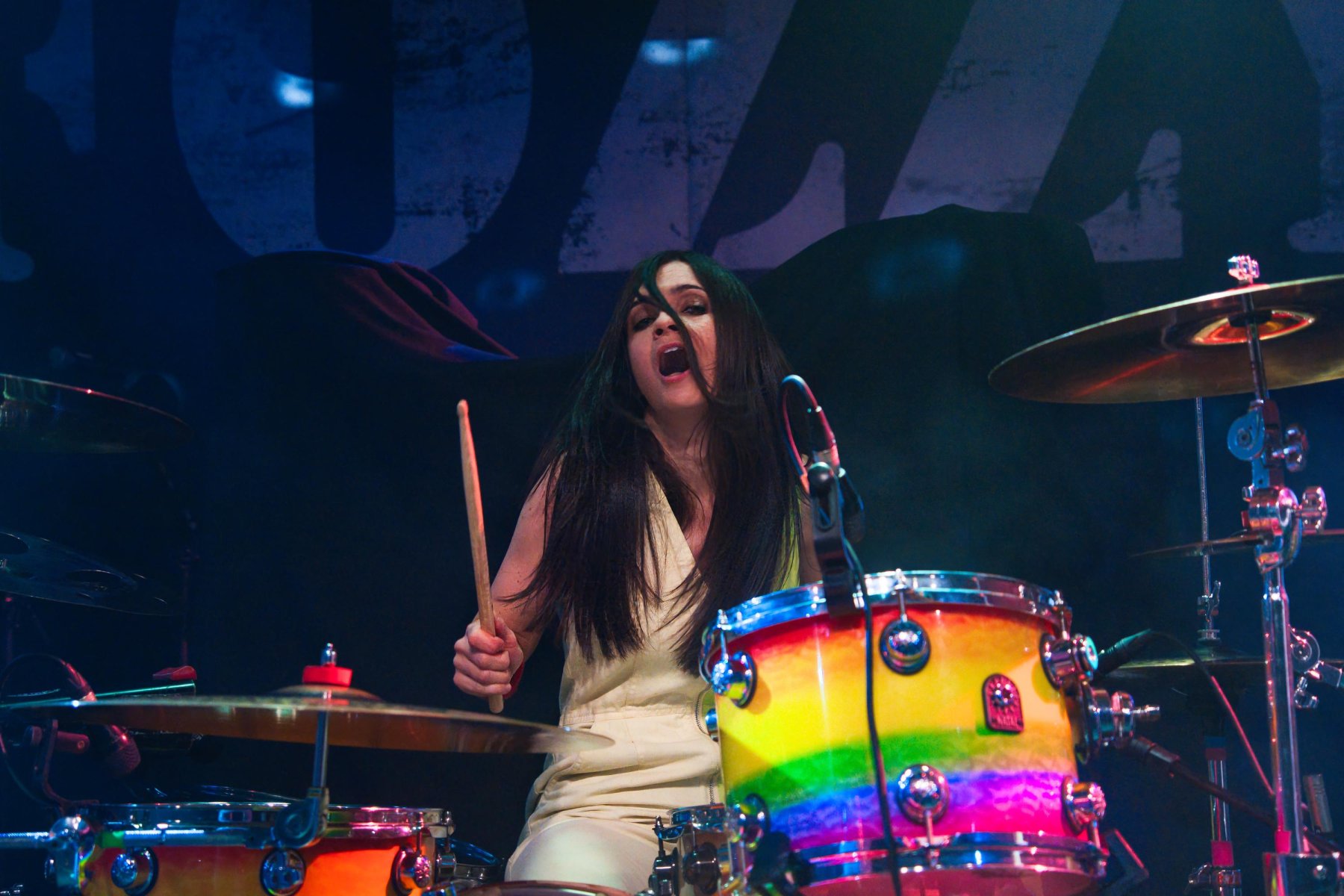 Next up it’s The Hot Damn: No strangers to the Rock City scene, this is a band we have been following and championing for many years now, ever since we first saw them at Underworld in Camden. The Hot Damn brought their trademark fun, complete with two full-sized unicorns. Laurie spun and grooved, Lzi laid down killer bass lines, and Josie, the smallest drummer in history, pounded the skins like a pro. Gill’s vocals were on point, especially during the famous Hot Damn twist on “(Oh Lord Won’t You Buy Me A) Mercedes Benz.”