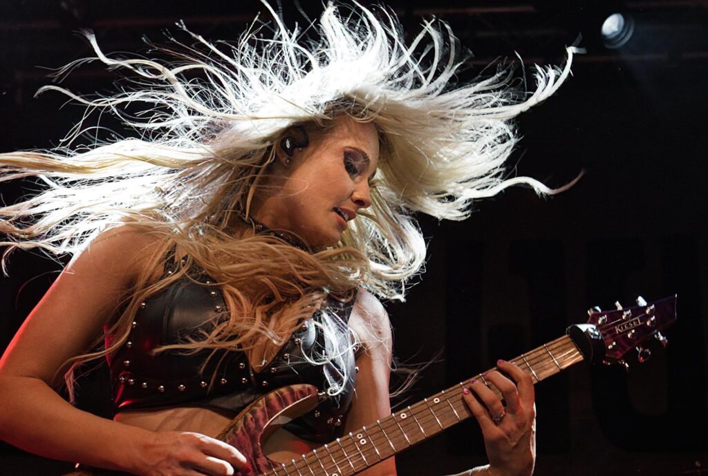 Then came Enter Sandman, where Sophie paused mid-riff to deliver a sultry sermon that sent shivers through the crowd. She’s not just a guitarist — she’s a rock ‘n’ roll storm in heels, equal parts lightning and charm.