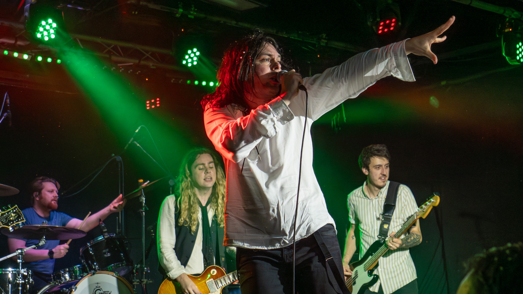 The pig-tailed guitarist greatly resembling Matt Peach in a ‘Where’s Wally’ costume gives a real taste of the musicianship that the night will bring.
