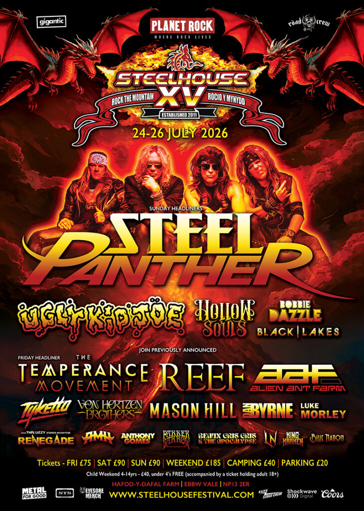Who is headlining Steelhouse Festival 2026? Friday: The Temperance Movement Saturday: Reef (special guests) Sunday: Steel Panther (with Ugly Kid Joe also on the bill)